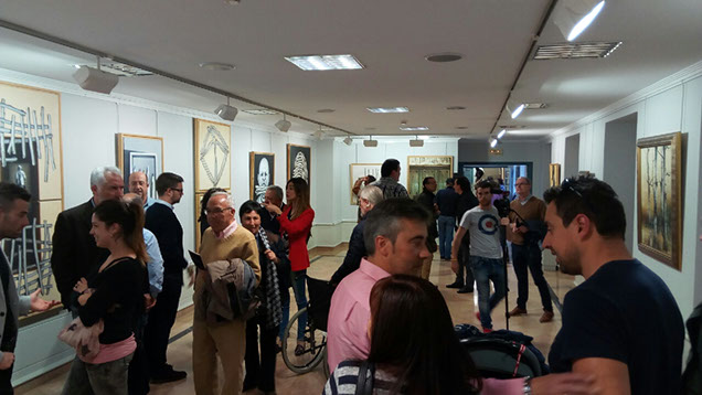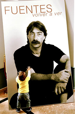 Fuentes 2017, Abril. BURGOS, Teatro Principal. Está compuesta por 51 cuadros repartidos en 3 salas totalmente diferenciadas. La primera sala está compuesta por el último proyecto del pintor denominado “Palo tras palo”. Se vale del palo para reflejar su propia experiencia vital, lanza sobre el lienzo la vida que se le escapa de las manos y lo hace de una manera sobria, realista, limpia, simbólica. La segunda sala la componen cuadros llenos de materia, en los que utiliza diferentes materiales, como cartón, papel, extracto de madera, arena, etc... que hacen que tengan una textura especial, algún collage, invitando al espectador a que vea más allá y se involucre en este medio de comunicación que para él es la pintura. En el piso superior se expusieron una obras seleccionadas para este espacio, muy variadas, un homenaje a Cristóbal Toral, campos de girasoles, alacenas... Cuadros que marcaron en la vida del pintor.